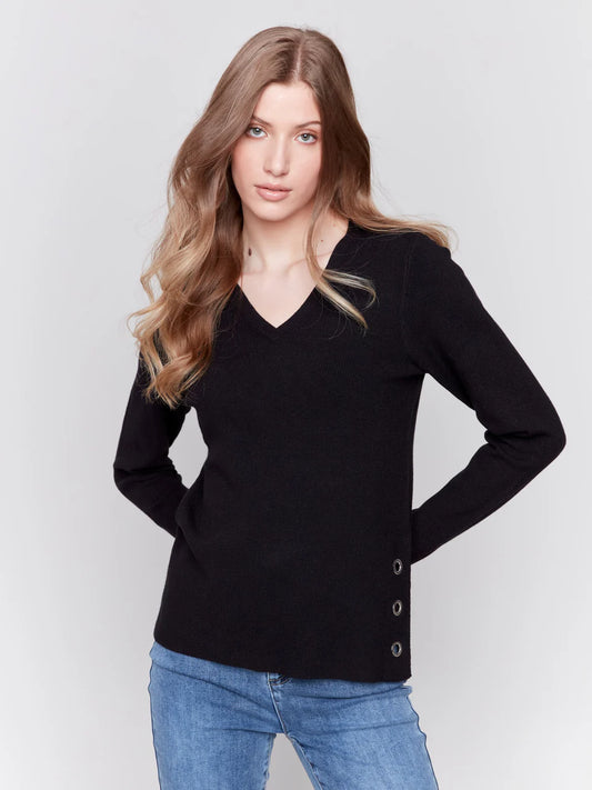 Charlie B Yarn Dye Mock Turtle Neck B/W
