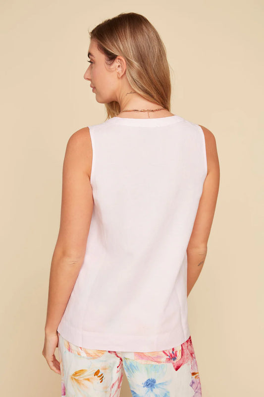 Renuar Linen Blend Sleeveless Top in Ballerina