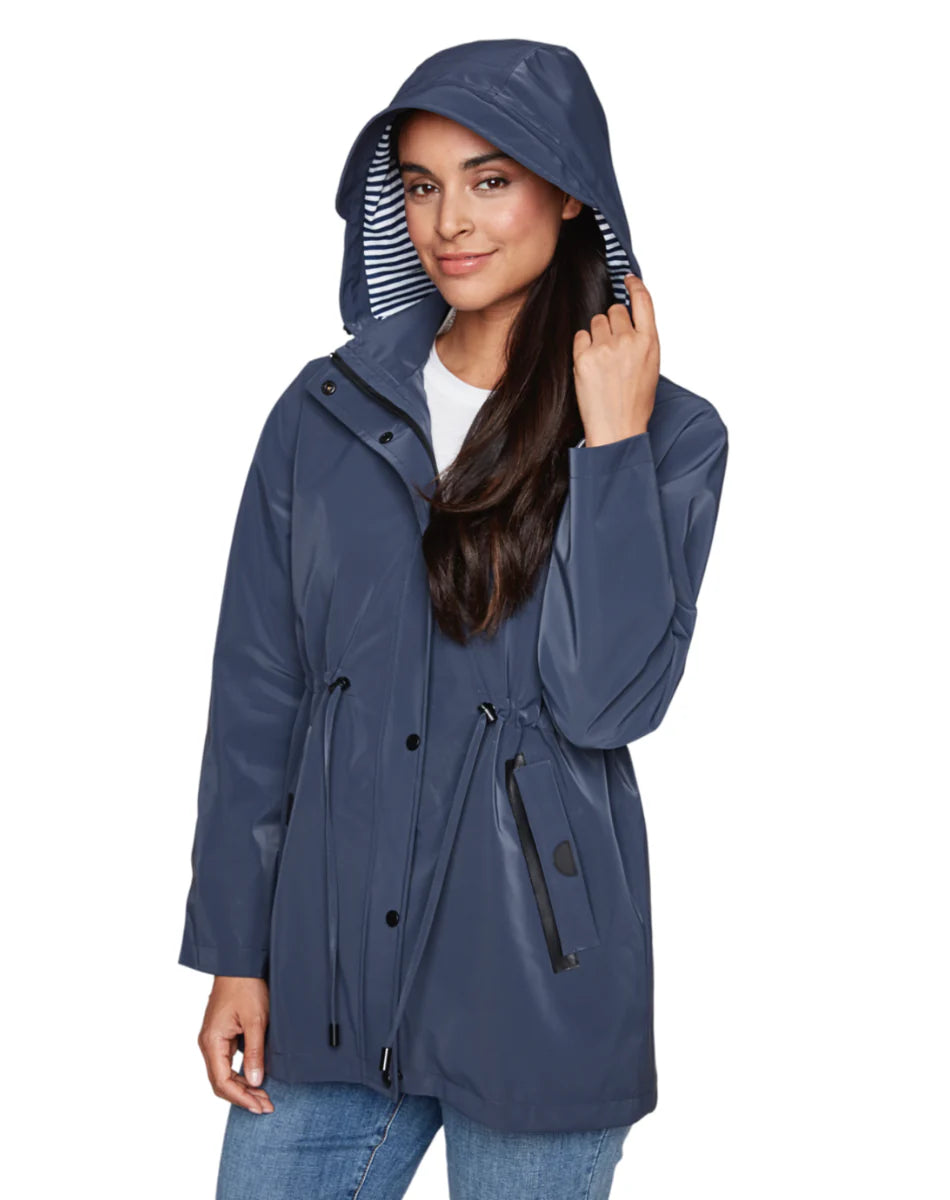 Brave the elements in this sleek, lined raincoat featuring a flattering cinch waist and functional zip pockets. Designed with a lightweight, water-resistant finish, it provides style and protection for drizzly days.