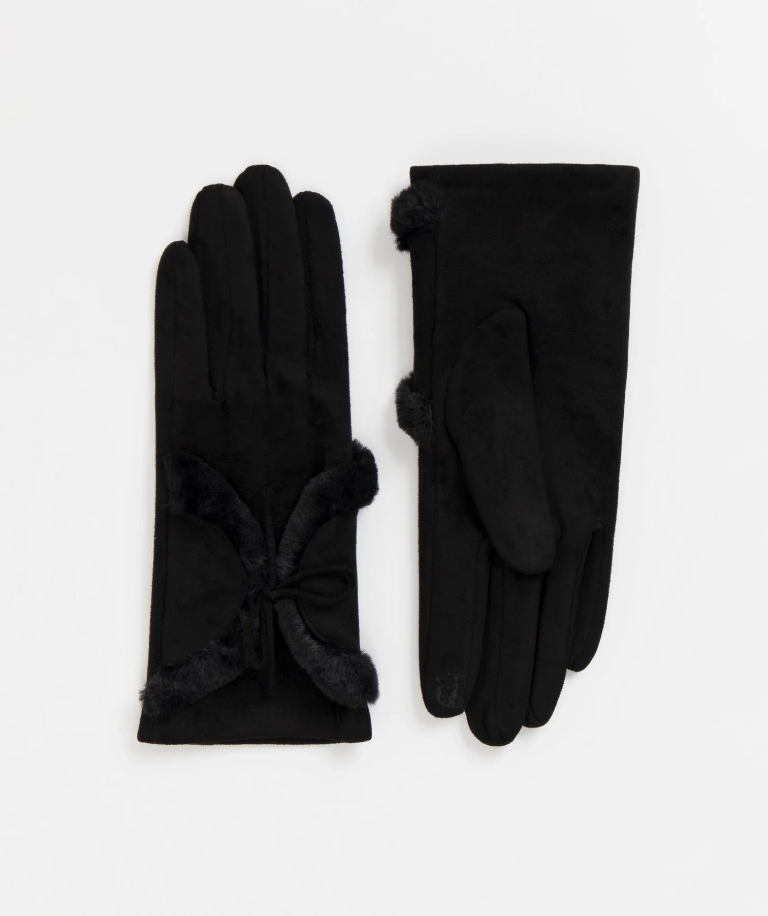 The Camel or Black Kora Faux Suede Gloves are a classic glove with a twist. The faux fur detailing and cute bow on the bridge of the hand make these cosy gloves stand out as you breeze through the freeze. The luxurious faux suede offers you the ultimate in comfort and style. As well as feeling gentle against your skin the soft lining keeps you warm and toasty. These smart gloves will be neutral enough to partner with any outfit or ensemble. But the clever detailing give you added polish.
