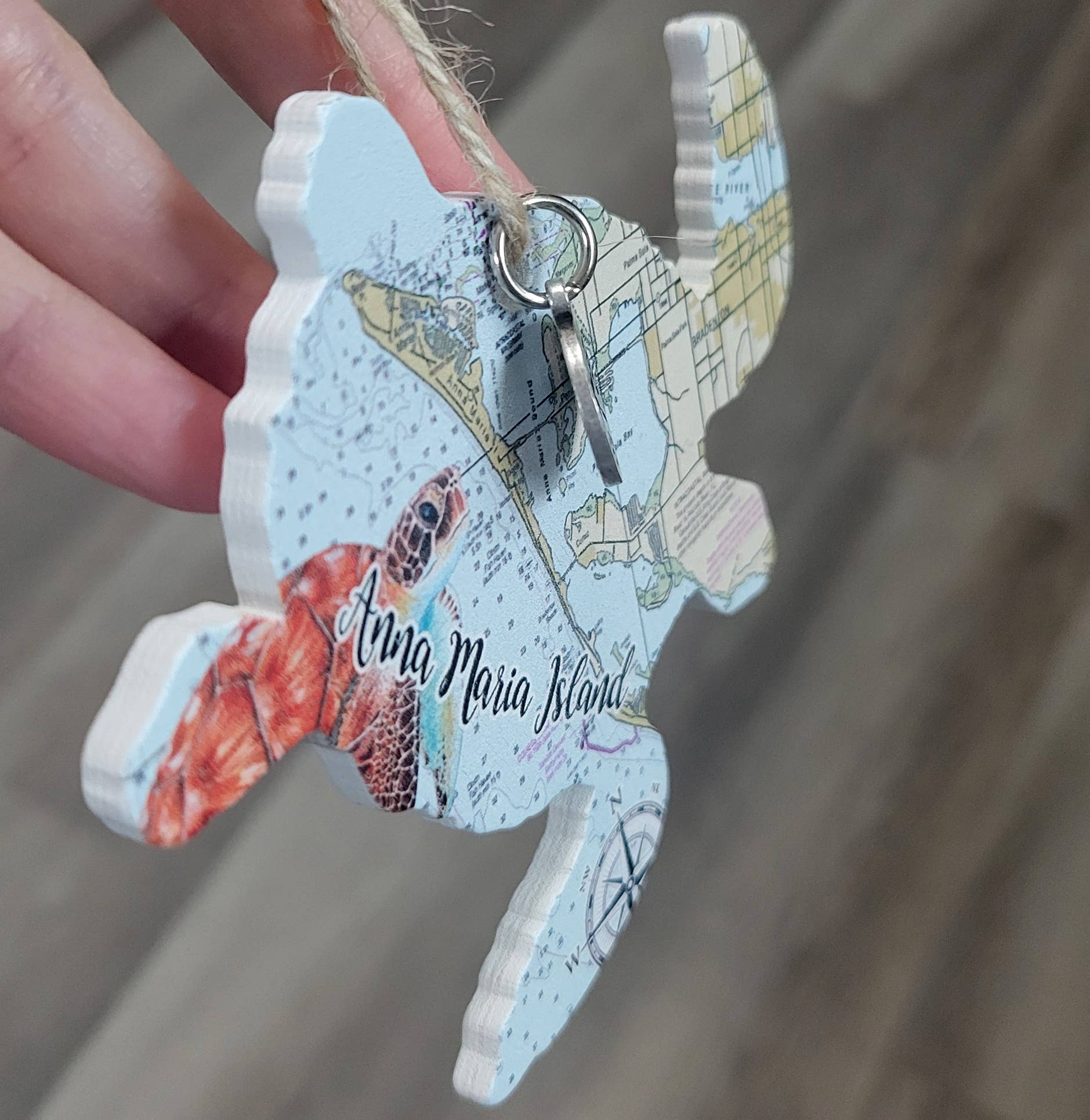 Wood Ornament - Turtle - Custom MAP Location- Best Seller!
